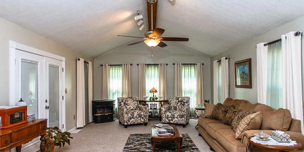 Located 1 hour driving time from Louisville This Property has a main house, a Guest Cottage, and (2 manufactured rental homes which can be removed at buyers request) The main house has granite in the kitchen with upscale cabinetry, tile and hardwood flooring in living room, family room, den, kitchen and baths Bathroom floor is heated. Bedrooms are carpeted. There are three out buildings which are finished and climate controlled. Plus a huge tobacco barn across the road from the main house. The property consist of over 29 acres of scenic beauty to take in. The ridge line is wooded and a large creek fronts the property. Out buildings consist of-Tobacco barn 50 x 90, strip shed finished 12 x 20, garden shed finished 12 x 20, Pole barn garage 40 'X 30' finished with climate control,